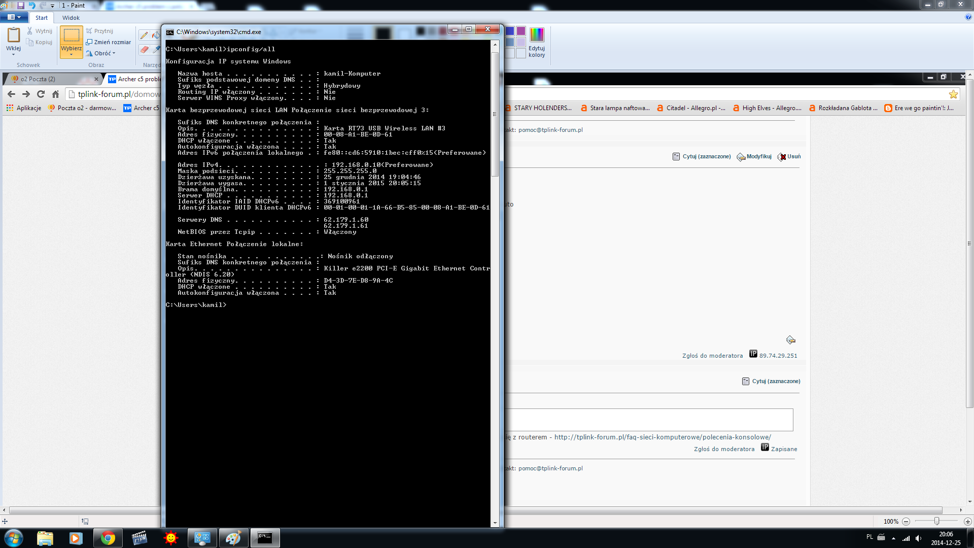 Co znaczy dalej to samo. Daj obrazki z ipconfig /all z urządzeń które łączą się z routerem -