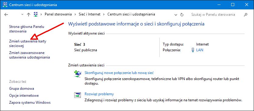 (tak wiem, to ^ opis dla win7 , ale w win 10 centrum sieci i udostępnienia jest łudząco podobne)