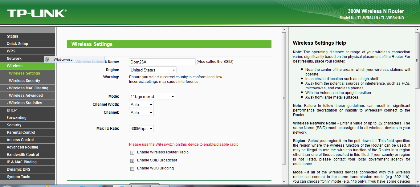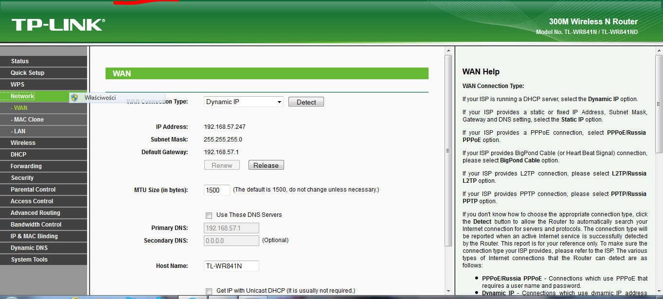 W zakładce WAN ma być ustawione Dynamic IP? Kraj zostawić USA czy dać Polskę?