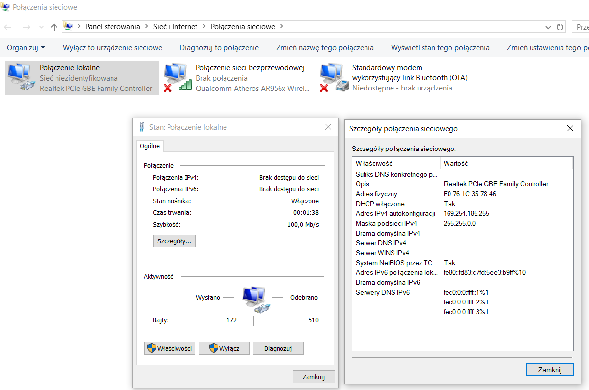 Teraz nie działa ani po kablu ani po WiFi, choć kontrolki świecą prawidłowo.