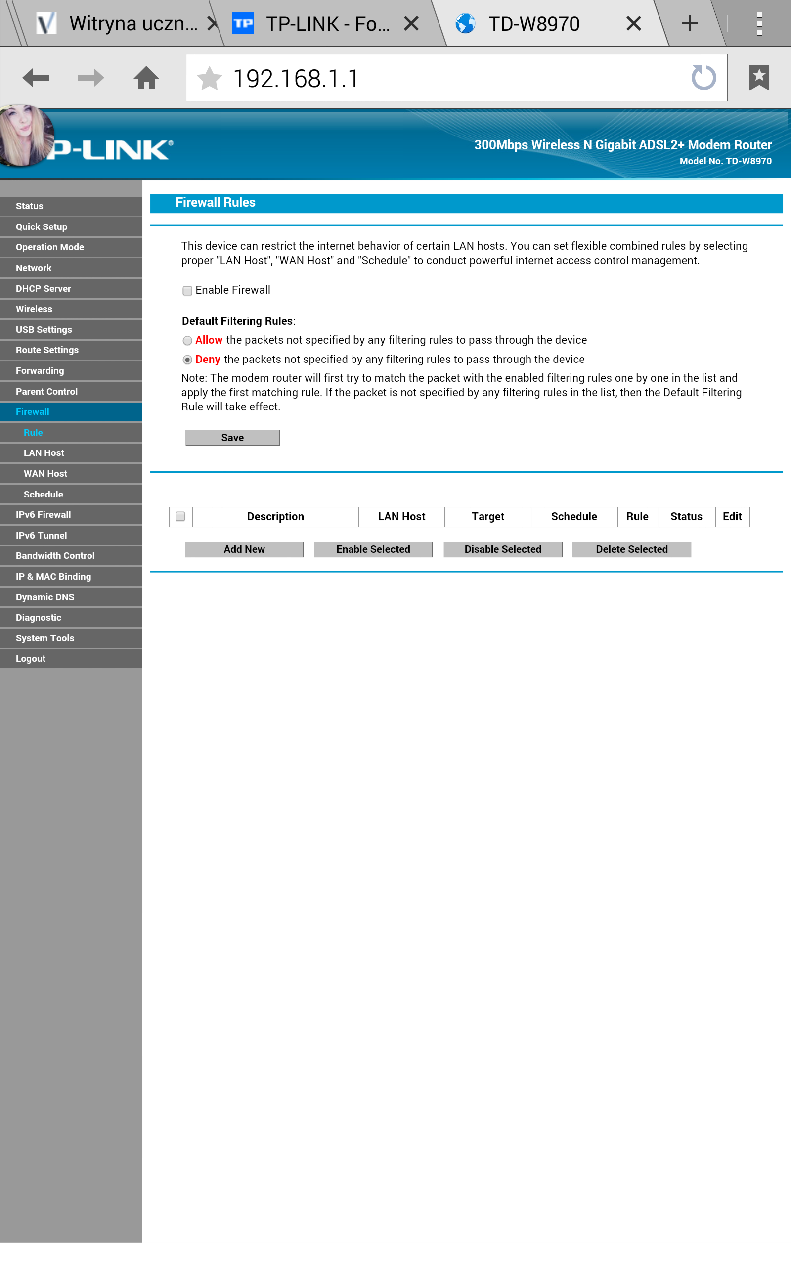 Muszę najlepiej na już zbloczyć konkretną stronę, przykładowo www.kwejk.pl Moje pytanie brzmi jak to zrobić na tym routerze? Praktycznie w każdym poradniku co znajduję, menu różni się od mojego...