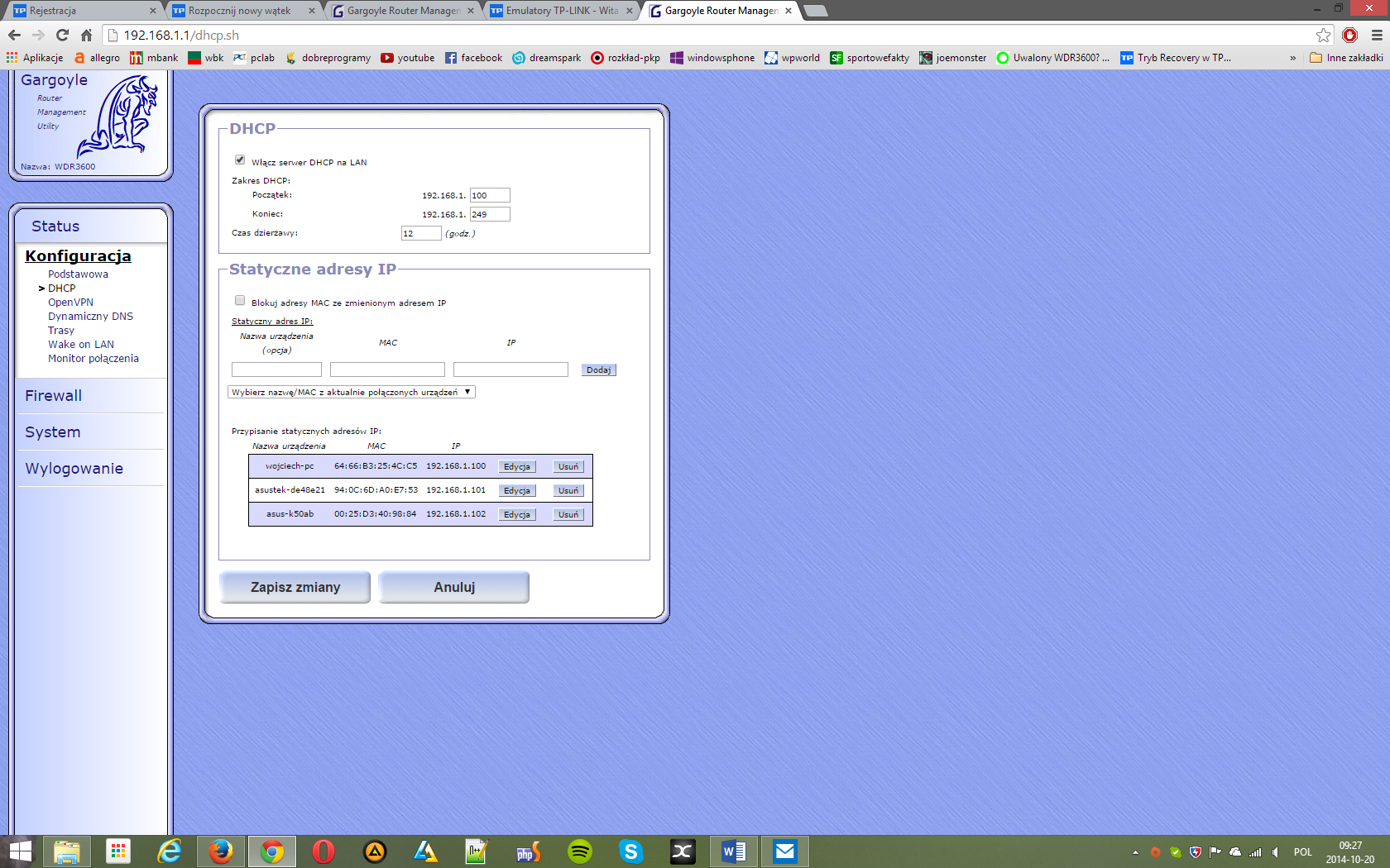 Przełącz kabel do WR'a i skonfiguruj połączenie PPPoE oraz WiFi wg uznania. Zapisz ustawienia