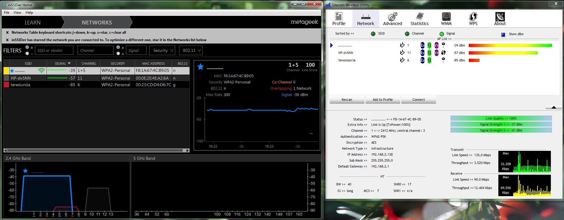 Skan sieci WiFi przeprowadzony inSSIDer-rem tak więc wziąłem poprawkę na to co się dzieje w otoczeniu.