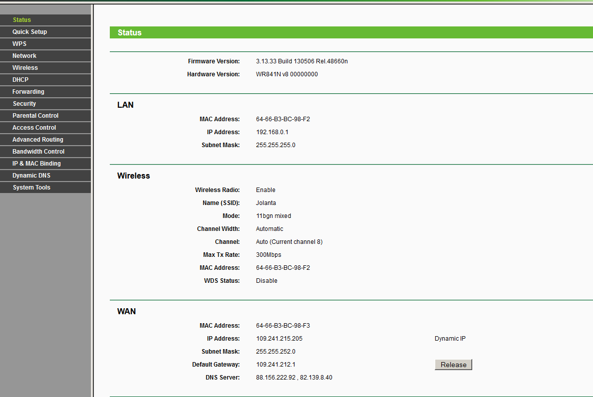 Teraz pokaż jeszcze Status routera dokładnie chodzi o port WAN.