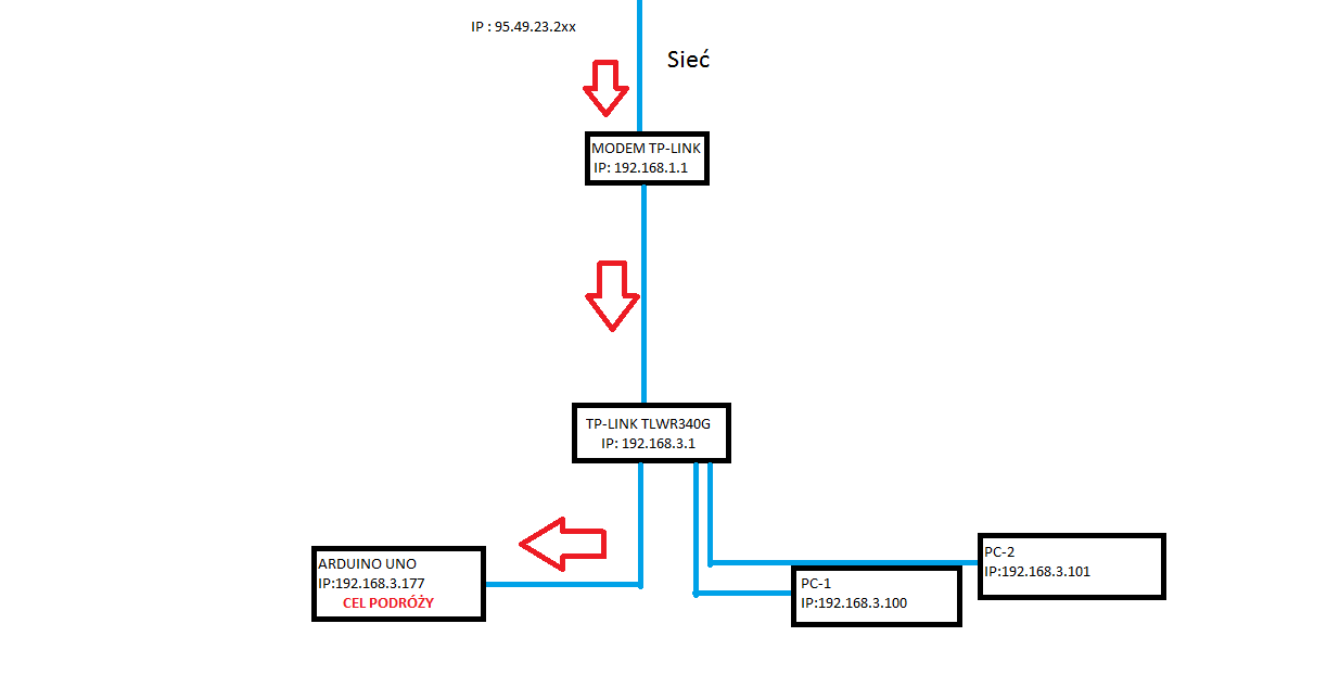 Witam, Mam modem TD- W8951ND no i problem mam następujący - Posiadam Arduino z Ethernet Shield'em na nim mam serwer www który w sieci lokalnej po LAN przy wpisaniu adresu 192.168.3.177 wyświetla mi aktualne parametry poszczególnych złącz na kontrolerze.