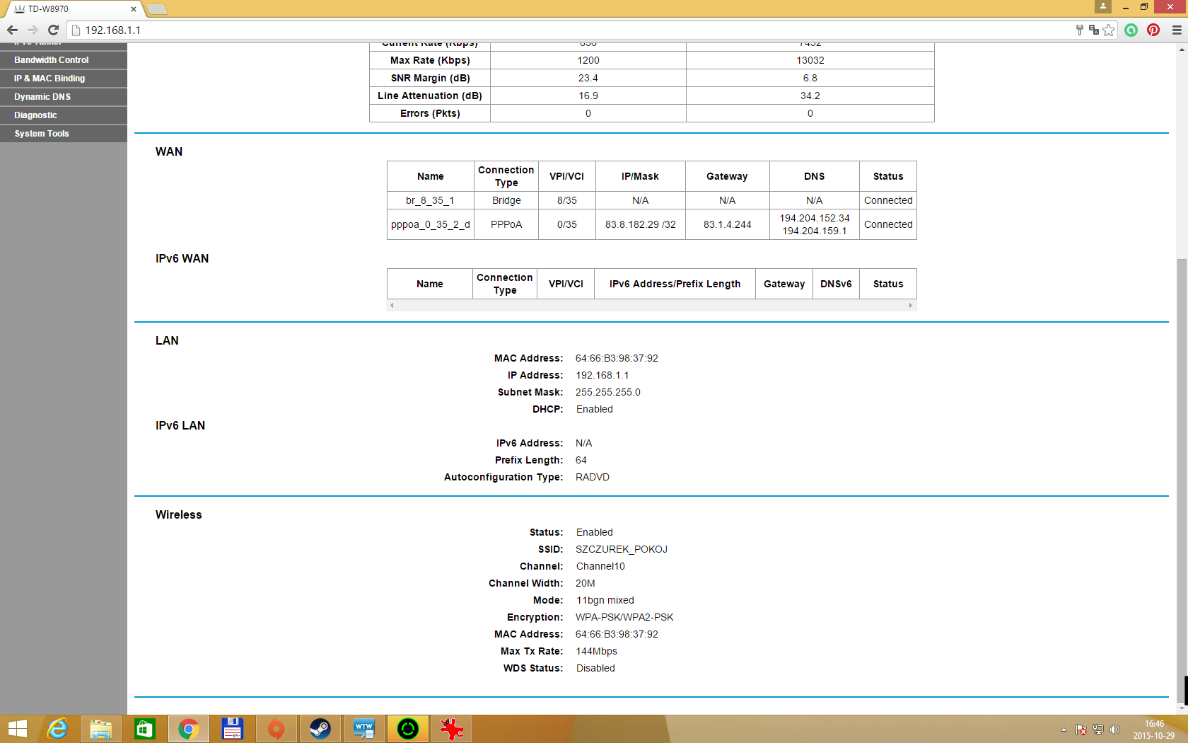P.S. Masz niski SNR na downloadzie, to może być przyczyną strat pakietów. Podaj jeszcze statystyki linii ADSL, ale CAŁE - to duża tabelka i nie mieści się na ekranie przeglądarki.