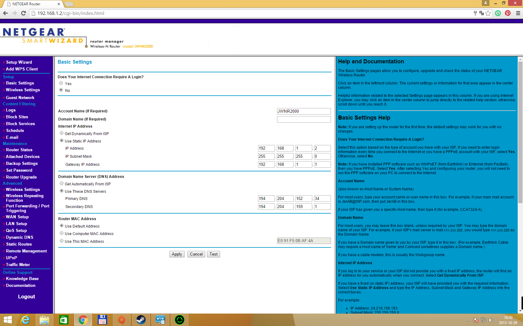 Zastanawia mnie jedna rzecz teraz. Siedzac przy komputerze wpietyn kablem do NETGER'a (druga kondygnacja) moge sie zalogowac do NETGERA'a (192.168.1.2) oraz do TPLINK'a (192.168.1.1), a siedzac przy komputerze wpietym do TPLINKA (ten router z modemem ADSL) moge sie na niego zalogowac (192.168.1.1) ale juz nie moge sie wbic na NETGEAR'a (192.168.1.2) - otrzymuje komunikat "Przekroczono limit czasu połączeniaSerwer 192.168.1.2 zbyt długo nie odpowiada.".