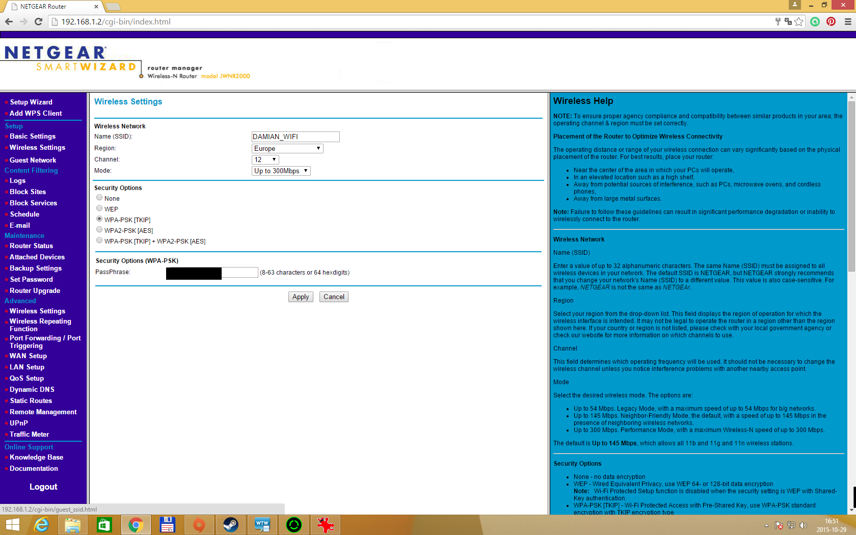 Dalej, na piętro (druga kondygnacja) idzie sobie kabel 30m do NetGear JWNR2000 (niestety musiałem zrobić to dworem, kabel w osłonie "żelowej"); do tego ustrojstwa są wpięte dwa komputery po kablu i dwa WIFI.