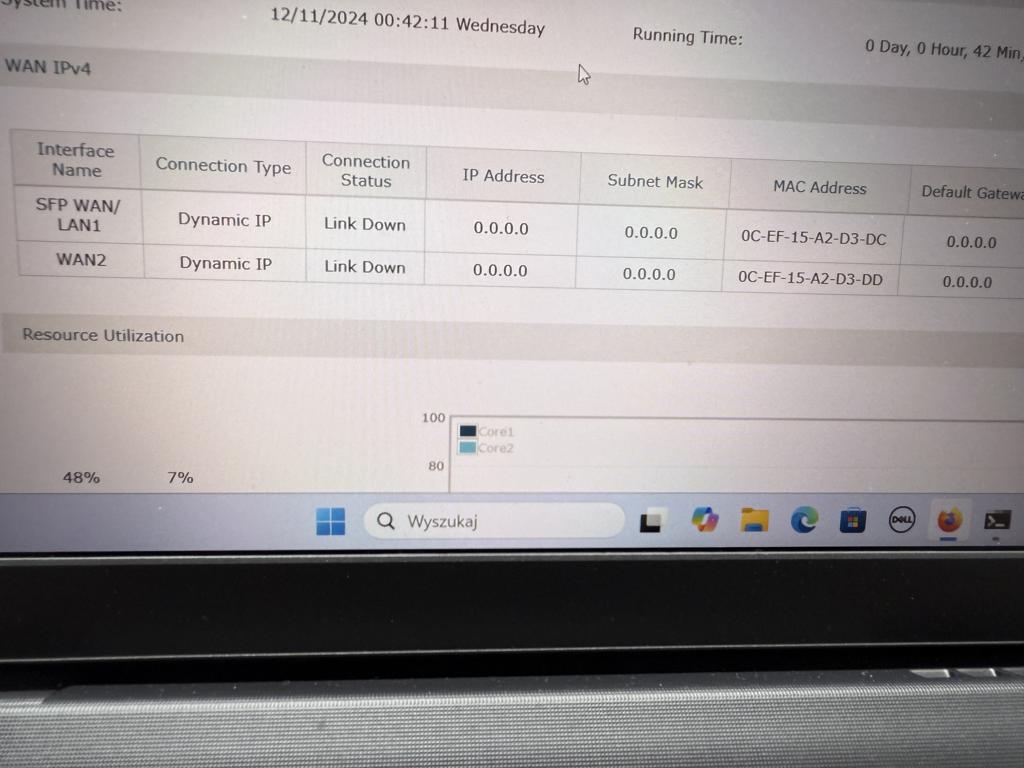Mam problem z konfiguracją SFPWAN\LAN1 . Sprawa wygląda tak, że operator ma zabezpieczenia po mac. Podłączenie realizowane jest przez wkładkę swiatłowodową. Sprawdziłem na routerze adresy mac i SFPWAN\LAN1 ma mac z końcówką ...DC, port WAN Eth ...DA i LAN ...DD. Podałem mu odpowiedni mac portu SPF. Po jego stronie na switchu widać ten mac po podłączeniu kable. Ale nie dostaję adresu po dhcp. Podłączony jest tylko 1 kabel światłowodowy nic więcej. W logach po mojej stronie widać że klient DHCP wysyła zapytanie o adres ale z mac DD czyli LAN. Przeleciałem wszystkie opcje i nie wiem jak router zmusić żeby klient dhcp z int. SFP zmusić do poprawnej pracy. Jakieś sugestie ?