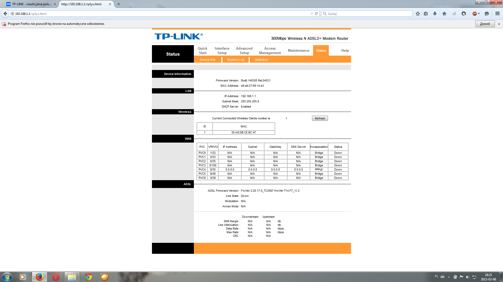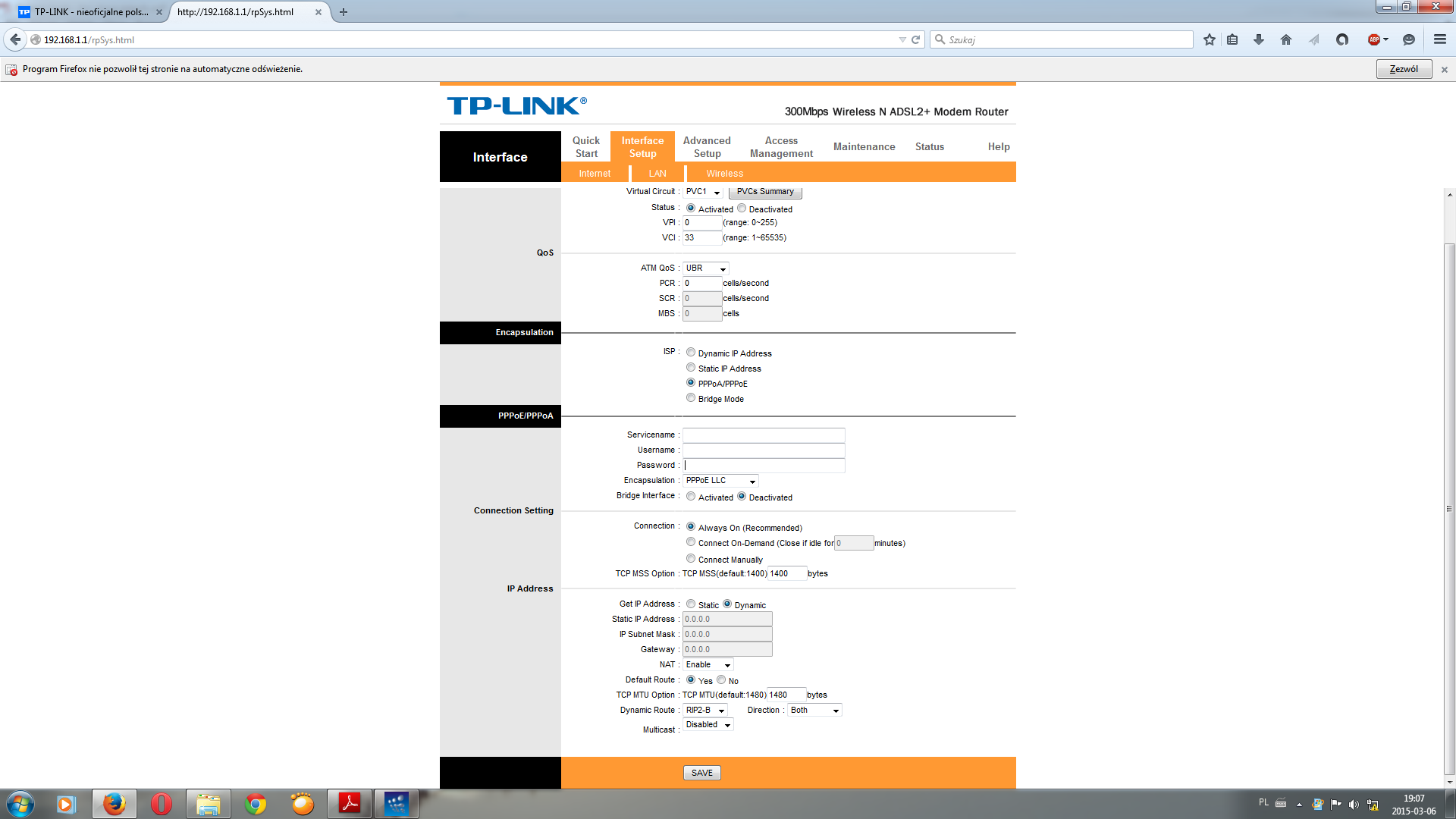 Mam problem z konfiguracją routera przewodowego model TD-W8961ND dokładnie to podczas weryfikacji ustawień routera wyskakuje błąd "020"
