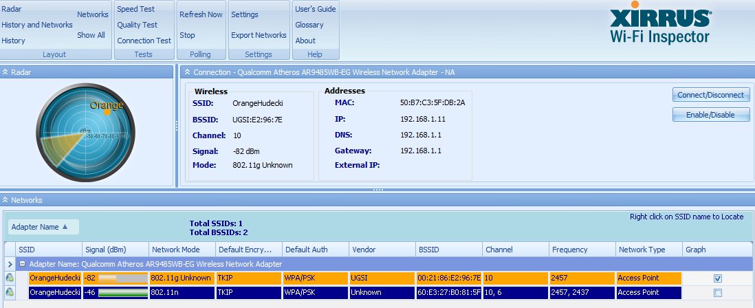 Na laptopie (Samsung) zasięg: 2/5 - kreski