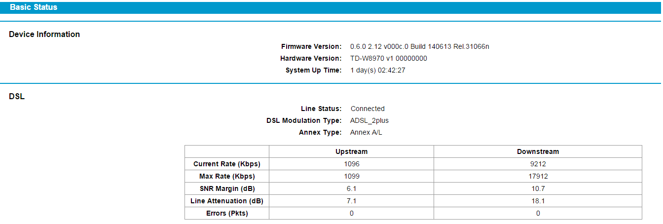 Przez około 1,5 roku router dobrze się synchronizował na 10.5mb i pingi około 30ms.
