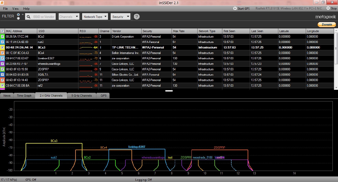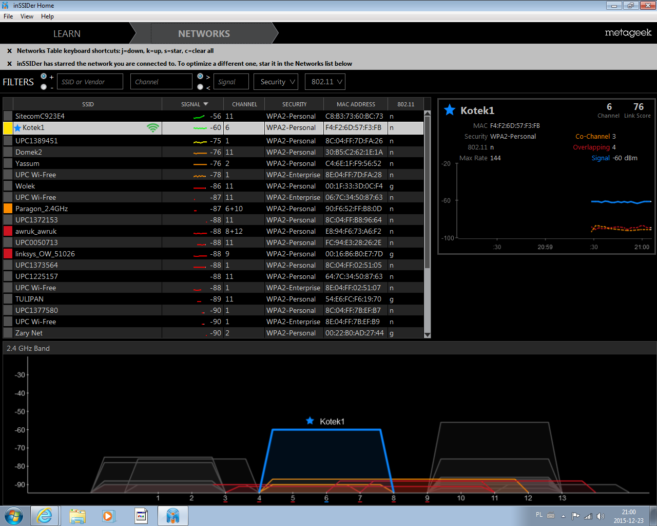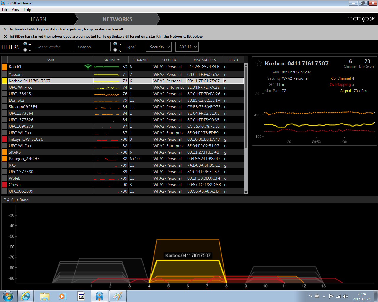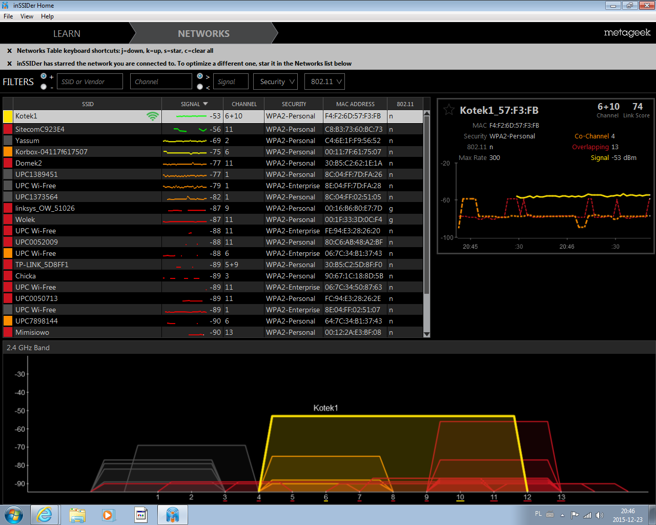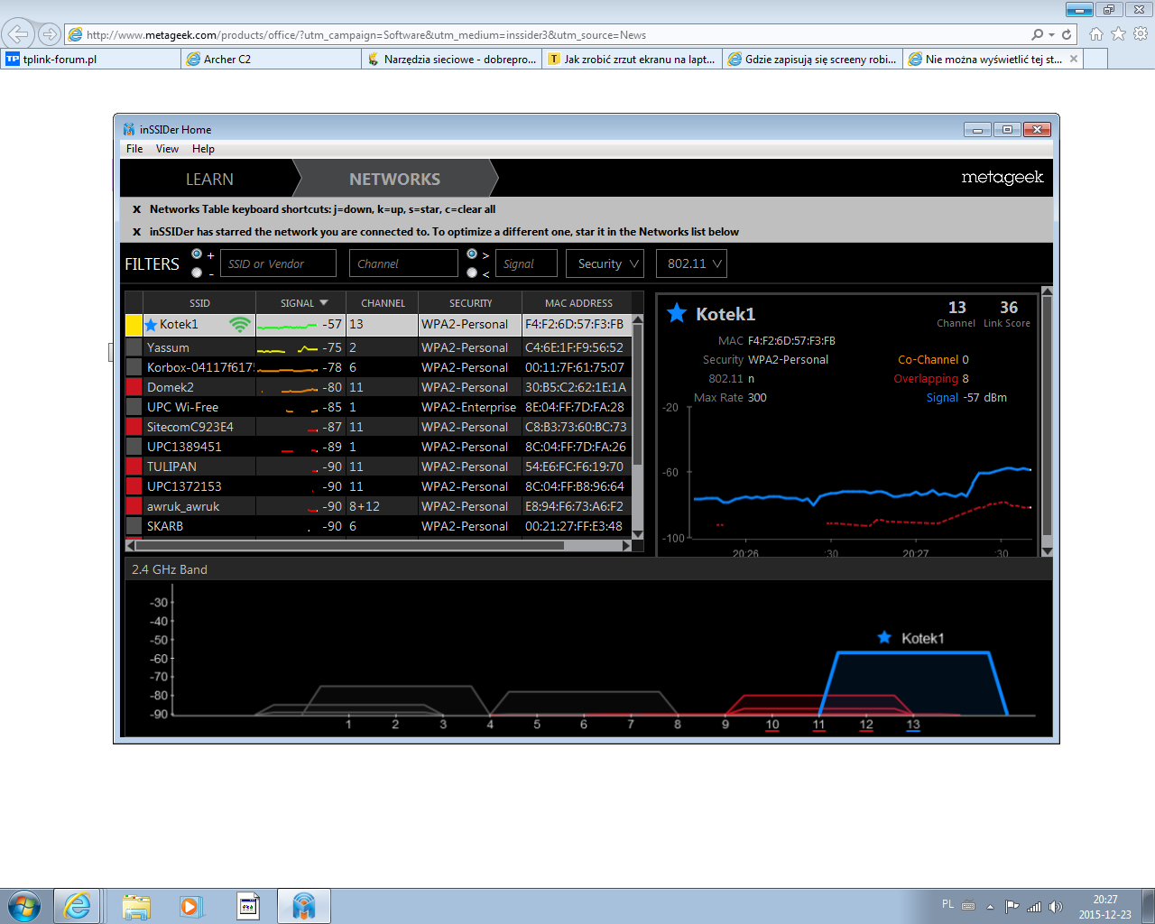 Daj wynik z pomiaru inssiderem oraz screen z Wireless settings na routerze.
