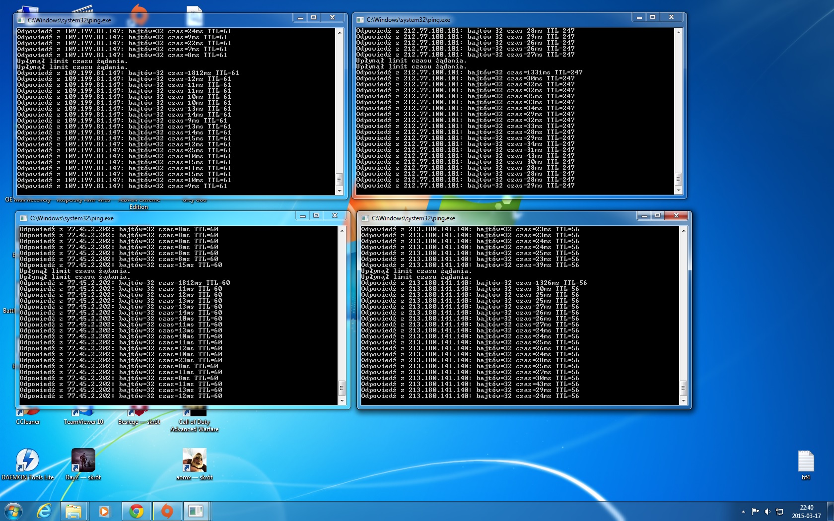 Podaj do jakich serwerów pingowałeś to sprawdzę.
