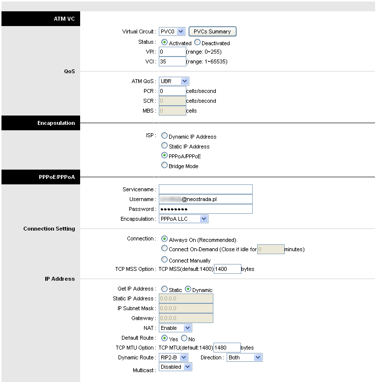 Posiadam od kilku lat router TP-LINK TD-W8901G oraz Neostradę do 10Mb po kablu.