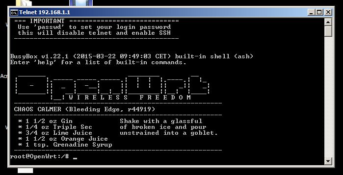 Po zainstalowaniu telneta i wpisaniu telnet 192.168.1.1 pojawil sie taki oto komunikat, lecz nadal nie moge dostac sie na 192.168.1.1