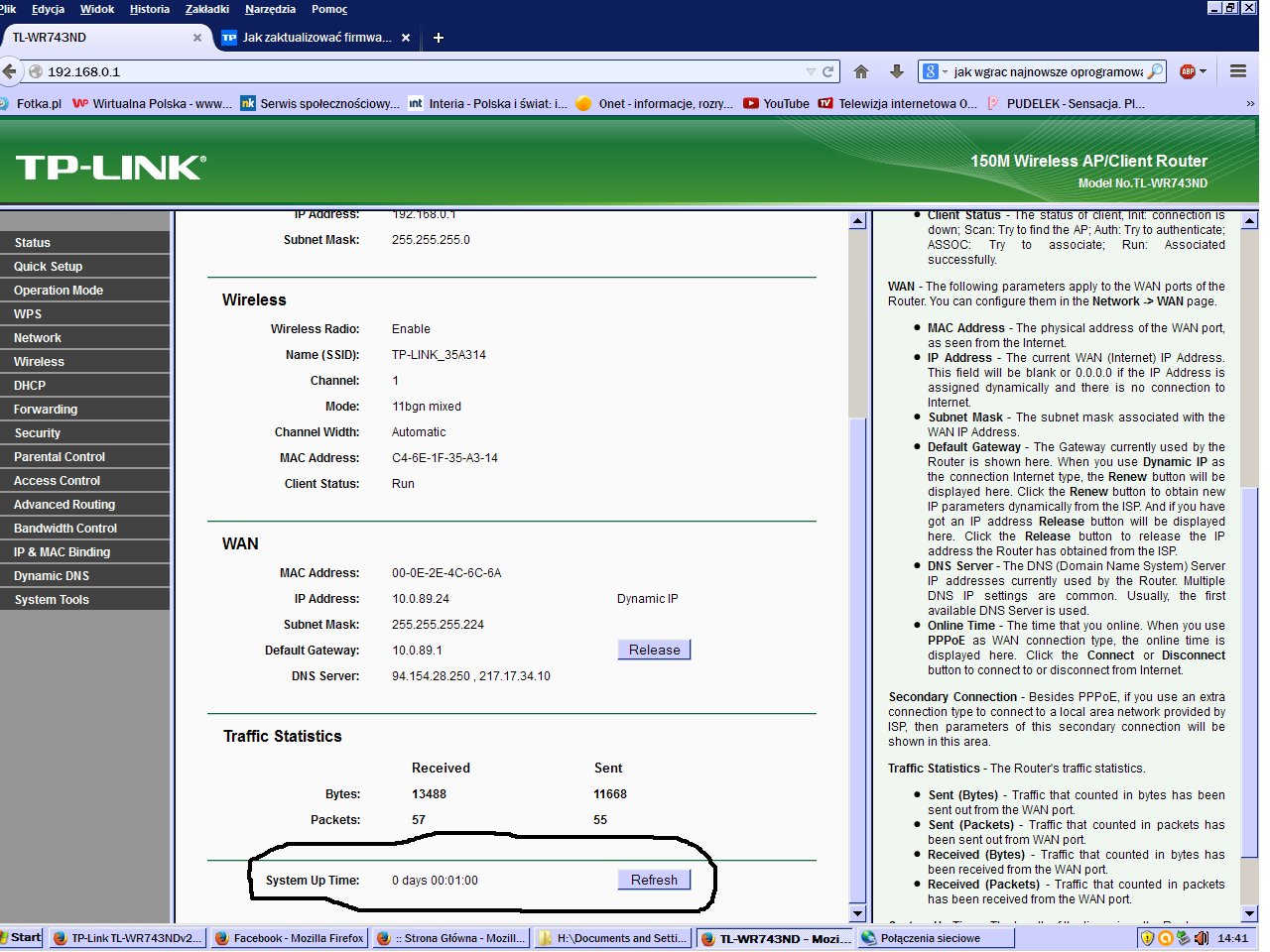 Czas działania systemu na routerze, od ostatniego restartu.