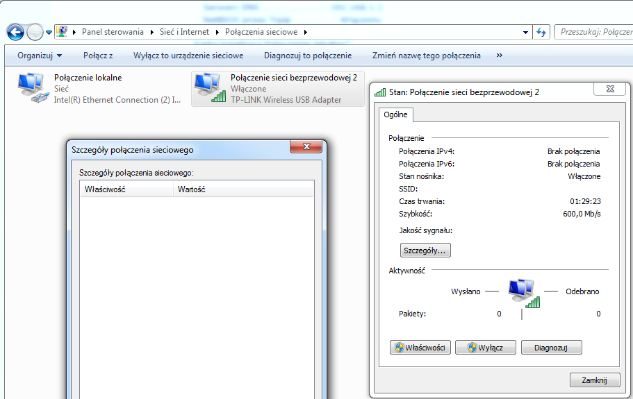 Zakupiłem sobie TL-WN727N zainstalowałem sterowniki i utility w którym to w zakładce advance wybieram swój model karty sieciowej pytaa czy jestem pewny ze chce właczyć moją karte daje tak i w odpowiedzi otrzymuję failed to switch wireless network adapter. Windows 7 ultimate x64 w diagnostyce połaczeń sieciowych wynajduje problem ze sterownikiem i pisze jak w temacie "system windows nie mógł automatycznie powiązać stosu protokołu ip z kartą sieciową" próbowałem już wszystkiego co znalazł dobry brat google ale nei pomogło mianowicie resetowałem protokół tcp/ip i inne polecenia nic nie pomagało wyłanczałem antywira "avast" nie mam firewolla a windowsowy jest wyłączony. Taki sam problem z modelem TL-WN722N. na kablu net działa bez problemu wi-fi na ruterze działa bo tel łaczy sie bez problemu. Sieć jest nie zabezpieczona.