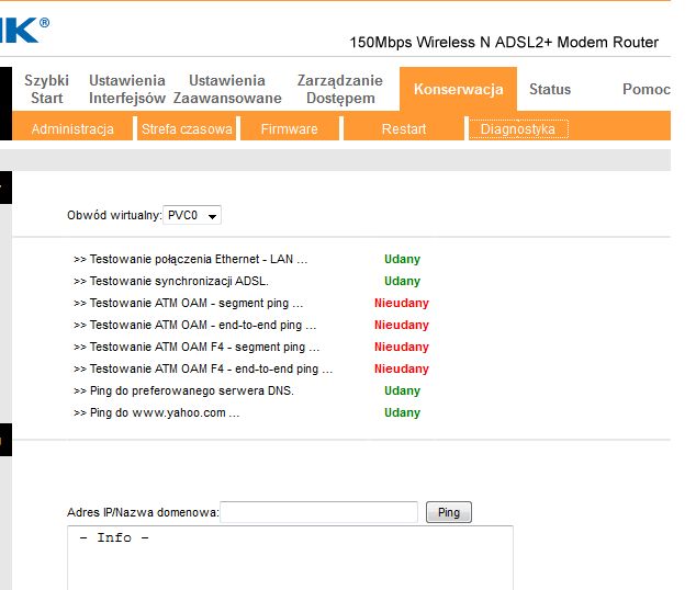 W załącznikach wrzucam ustawienia routera, oraz zrzut z diagnostyki, nie wiem czy to problem, ze czesc jest nieudana?