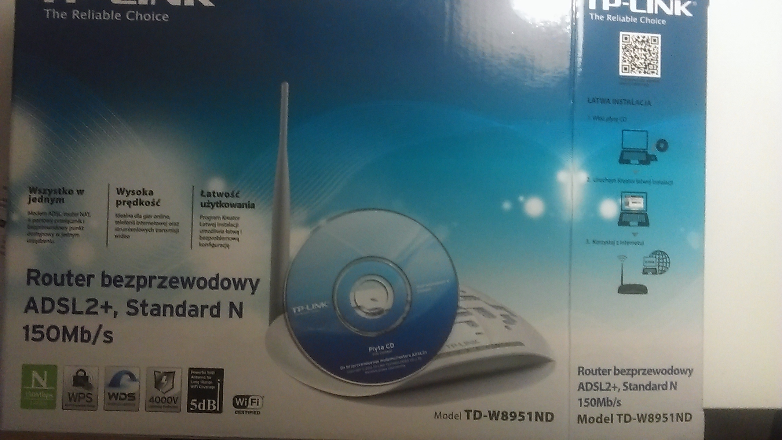 Mam problem z internetem.Jest to sprzęt w pracy, dostawca internetu Netia. Otóż mam router TD-W8951ND V5 (zdjęcie modelu poniżej) podpinam kablem telefonicznym (dziura po prawej z perspektywy patrzącego na monitor/ w dziurze po lewej wpięty fax+telefon), na zdjęciu wpięty ethernet ponieważ potrzebuje internetu zeby tu pisać wtyczkę do gniazdka ADSL w routerze. Później kabel ethernet do komputera stacjonarnego i WLAN routera i kabel zasilania do gniazdka.