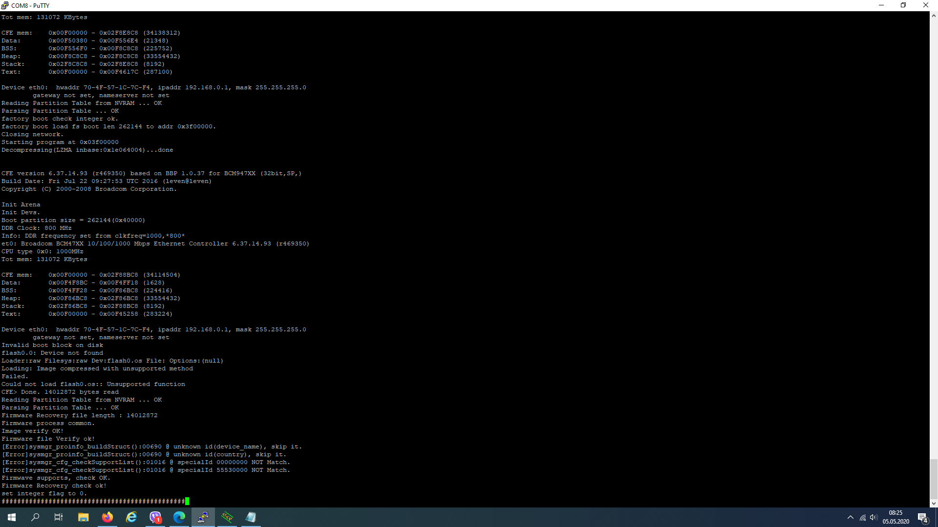 Konsola nie działa jak jest podłączona przed uruchomieniem routera. Dane wczytuje dopiero jak się podłącze już na włączonym. Z tego co pokazuje konsola tryb recovery startuje ale nie potrafi zweryfikować danego pliku przerywa proces i uruchamia się dd-wrt .