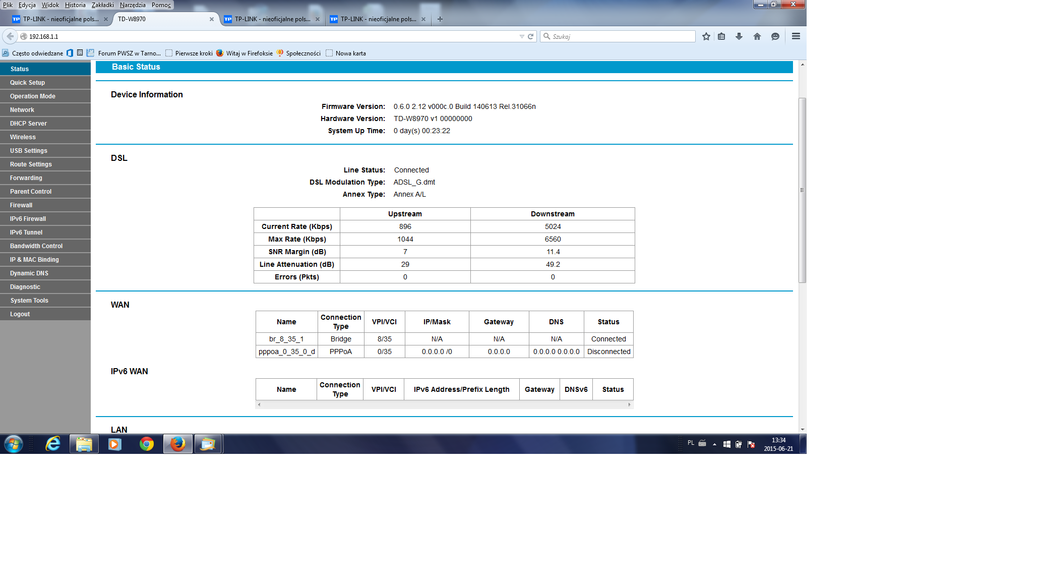 Zresetowałem ustawienia routera i skonfigurowałem go ponownie. Niestety nie działa . Konfigurację robiłem z płyty i ze strony wielokrotnie.