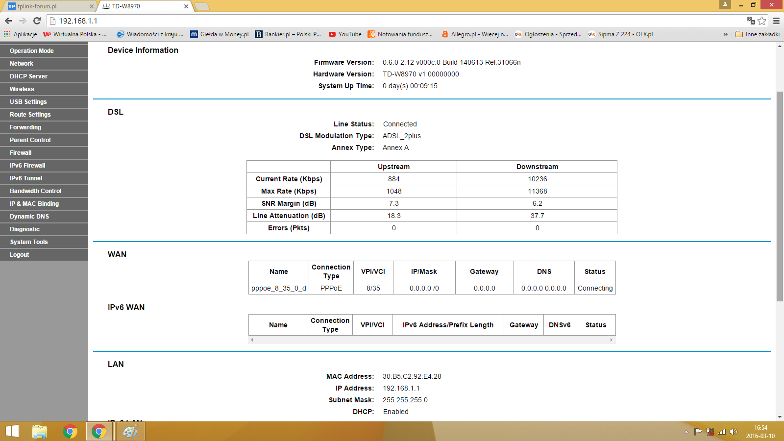 Usuń te połączenie PPPoE 8 35.... i utwórz nowe które będzie na PPPoA VPI 0 VCI 35. Wpisz swój login i hasło.