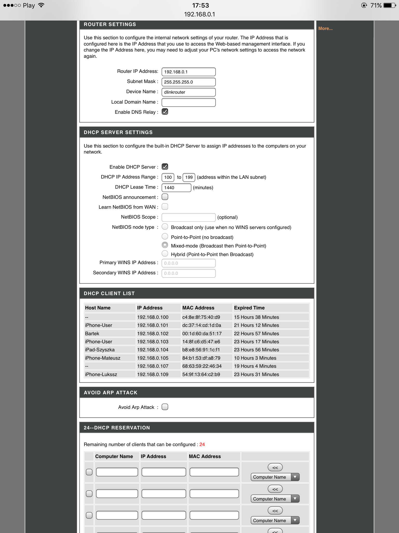 Dlatego że tryb client nie jest do końca przezroczysty no i nie jest klientem DHCP bo adres IP wpisałeś do tunera na stałe (ręcznie).