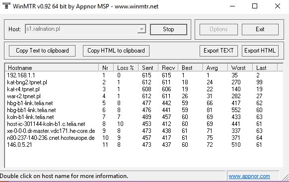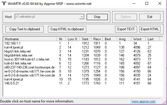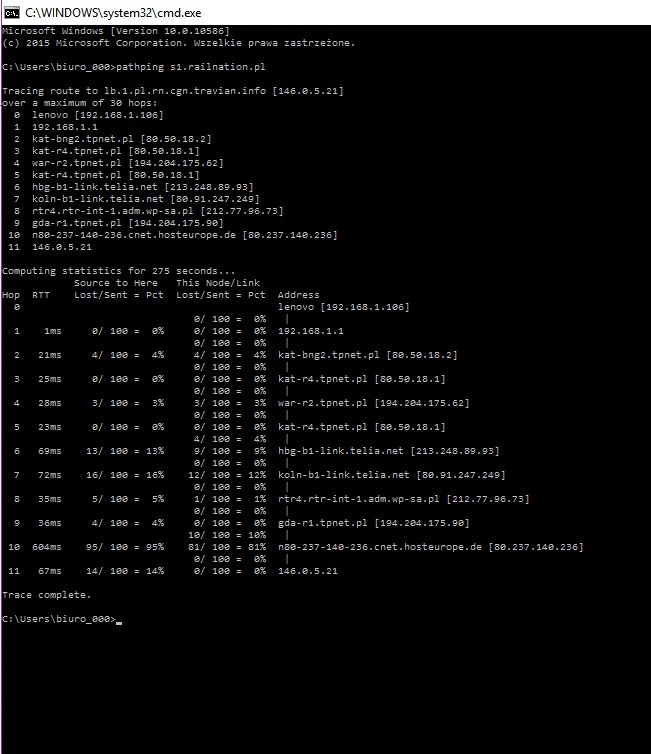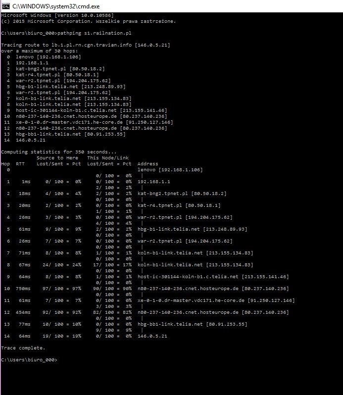 Jednakże podczas wizyty technika podłączył on router funbox (niestety nie mam screena ) ale wtedy loss na serwerach tpnet był 0% na serwerach telia jednocyfrowy. Technik przyznał racje że mają jakiś problem z "telia" jednak mnie zastanawia dlaczego na serwerach tpnet jest loss przy routerze TP-link a na funboxie nie