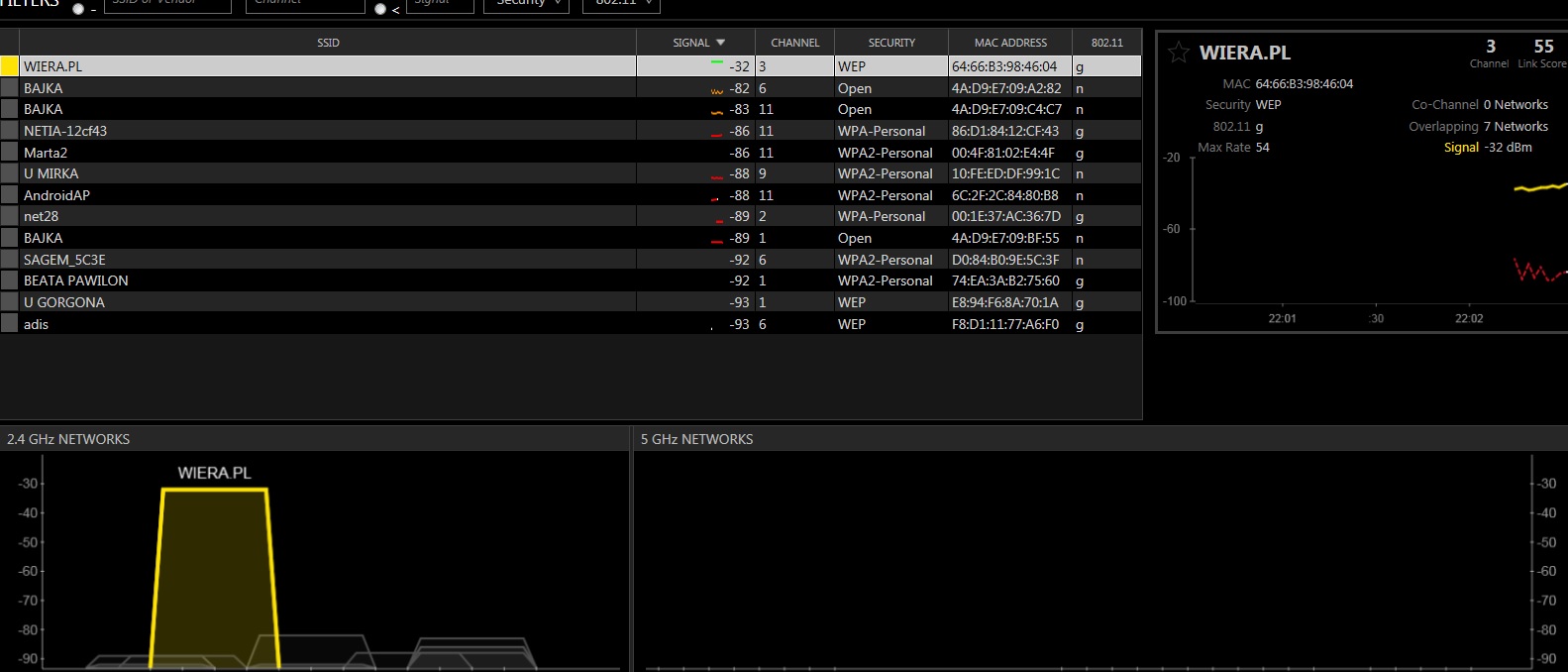 A właśnie na kanale 13 mam postawionego AirLive G.DUO na drugim piętrze celem przedłużenia sygnału (działa idealnie dzięki temu że ma 2 radia), jak robiłem screena i te wszystkie testy to miałem go wyłączonego, myślałem że może on coś zakłóca ale jak jest wyłączony to dzieje się to samo.